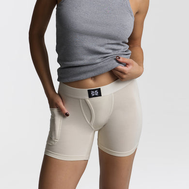 The Baller you know and love — now with a front fly, higher rise, and side pocket. This is comfort for every body.
